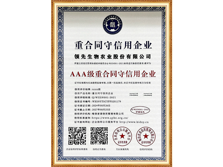AAA級重服務(wù)守信用企業(yè)